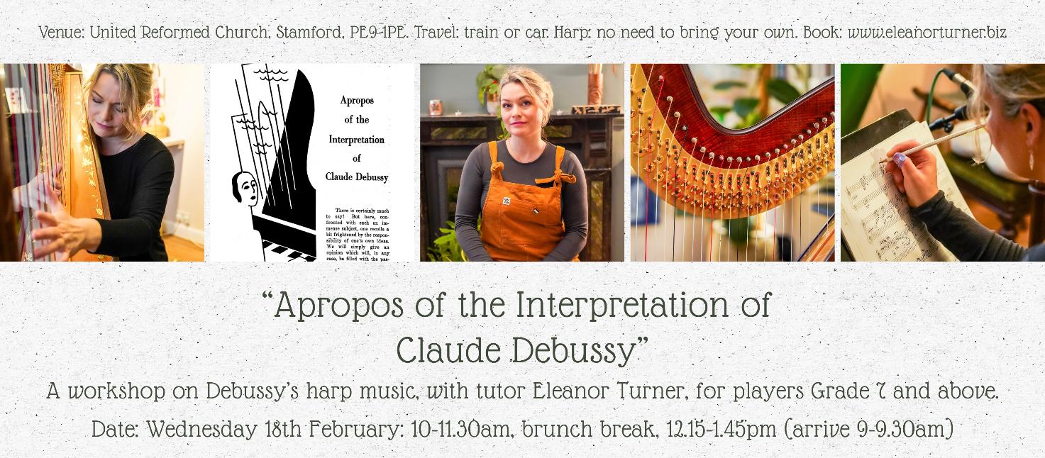 TWO PLACES AVAILABLE: Eleanor's Beginner Harp Course is open for new students: £180 for 6 half hour lessons INCLUDING harp hire. Please email Eleanor: info@eleanorturner.com The first lesson must be in person at Eleanor's studio in Stamford, but subsequent lessons can be online.